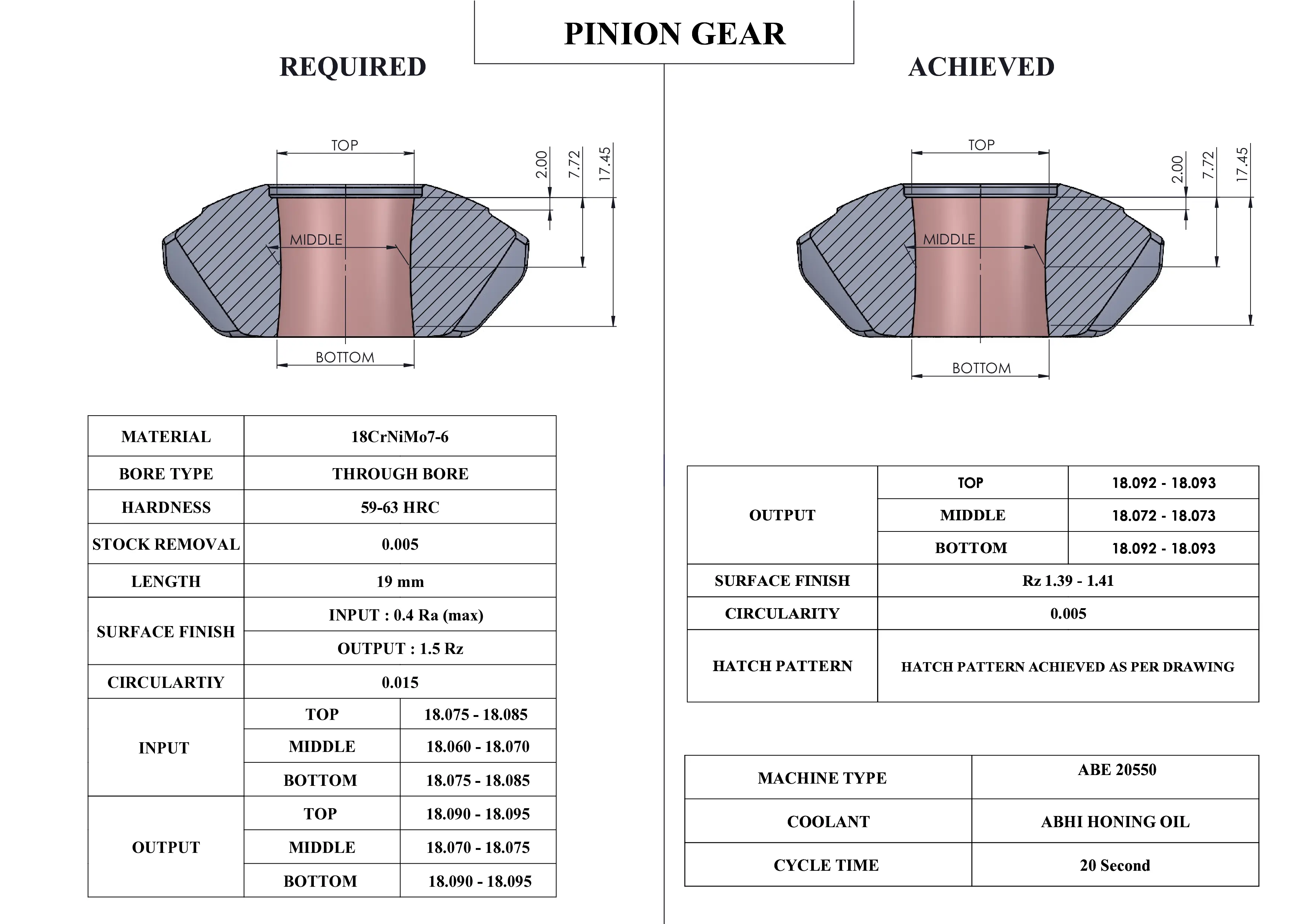 When a component is internally plain, a straight cylindrical bore may not deliver the desired functional outcome. In such cases, an hourglass bore form is introduced intentionally through a controlled honing process.